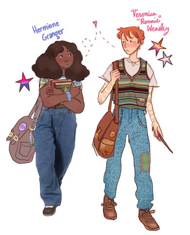 ronnie is an au for me! basically the idea is Ron as a mtf lesbian- Veronica "Ronnie" Weasley :) and I ship her with bi! hermione. i have a thread under my pinned with more about them <3
